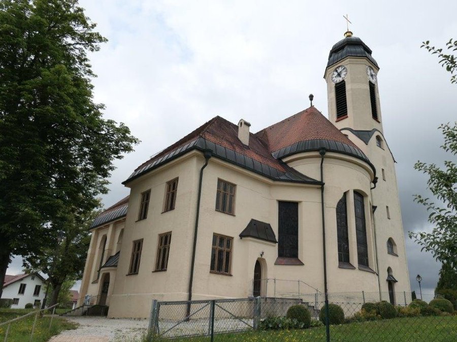 Die Kirche wurde Anfang des 20. Jahrhunderts erbaut. Sie ist ein nach Osten gerichteter Saalbau mit querhausartiger Ausweitung im vorderen Bereich des Langhauses. Durch zwei Portale auf der West- und Südseite gelangt man in das Kircheninnere. Die Kirche hat teilweise bemalte Fenster im Langhaus. Der Hochaltar hat ein Glasgemälde der Maria Immaculata umgeben von Engelschören.